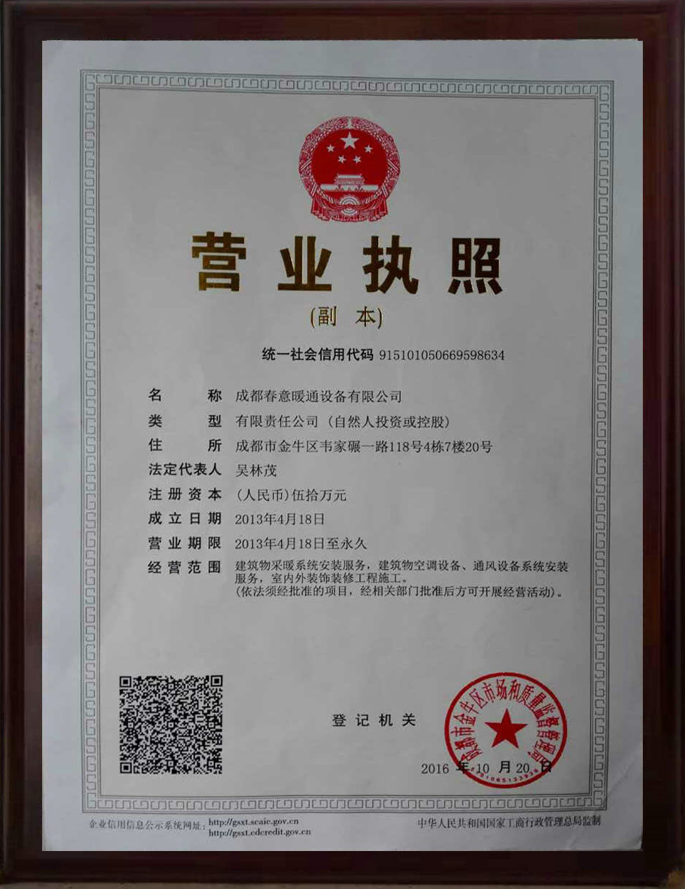 成都春意暖通設(shè)備有限公司CHENGDU CHUANYI NUANTONG EQUIPMENT NCO.LTD.